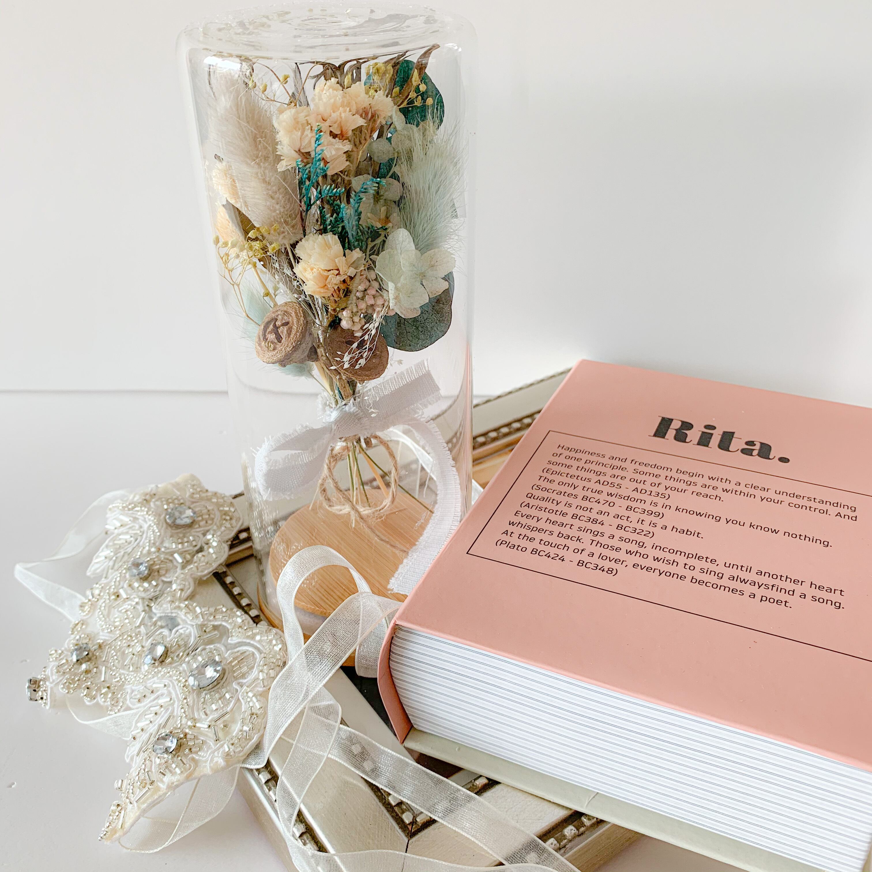 リボンや中のドライフラワーのお色味もオーダーできますのでお気軽にお申し付けください。