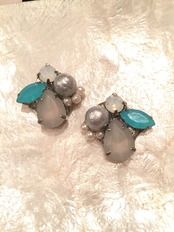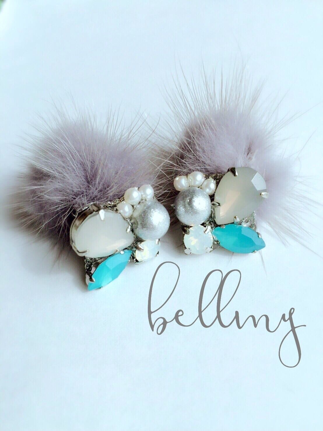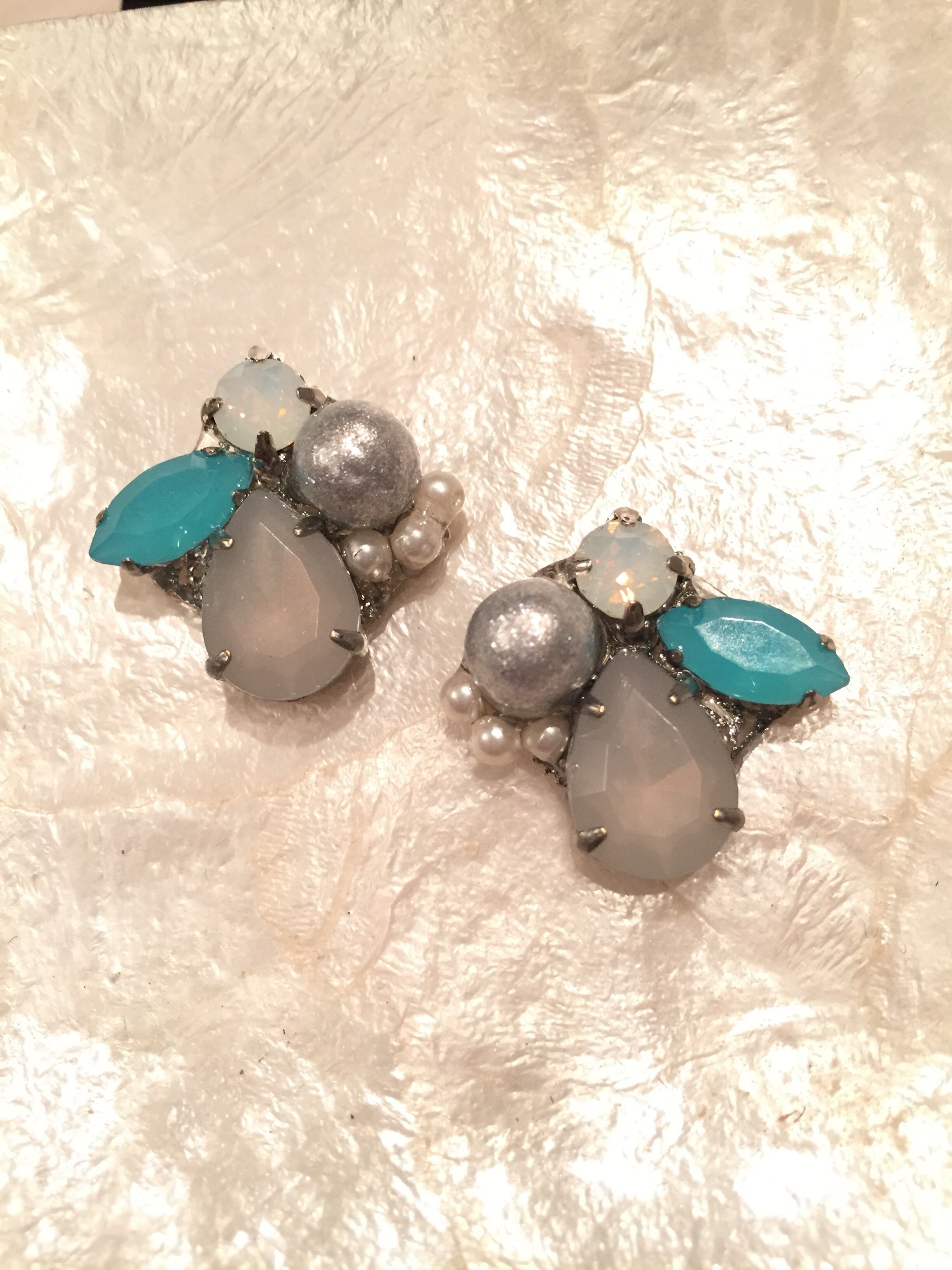 グレー、ブルー、オパールのビジューにグレーパールと樹脂パールを組み合わせたものとなっております。