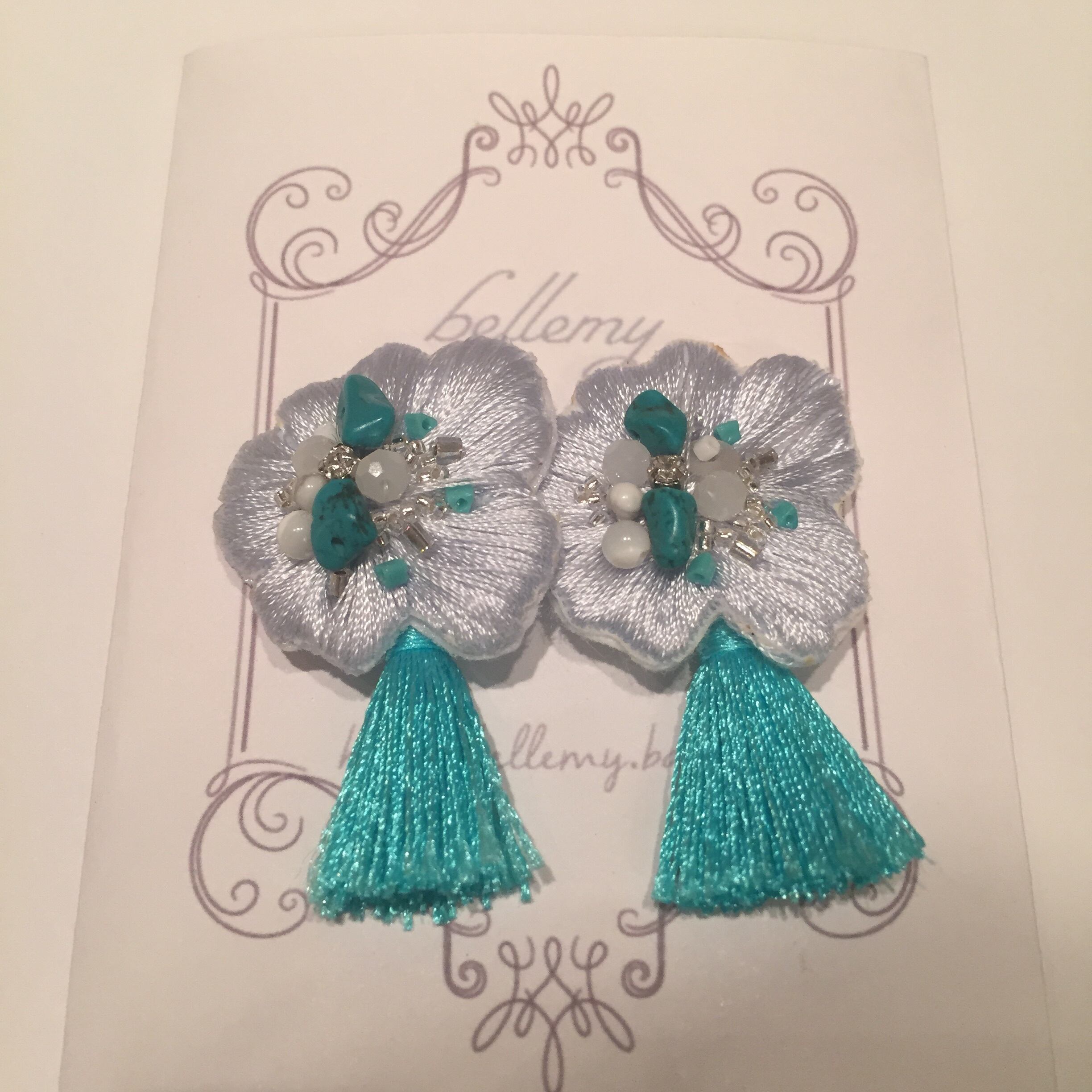 軽さも軽く、ピアスからイヤリングの変更も可能です。また、刺繍糸のカラーも変更可能ですのでイメージをご相談ください。