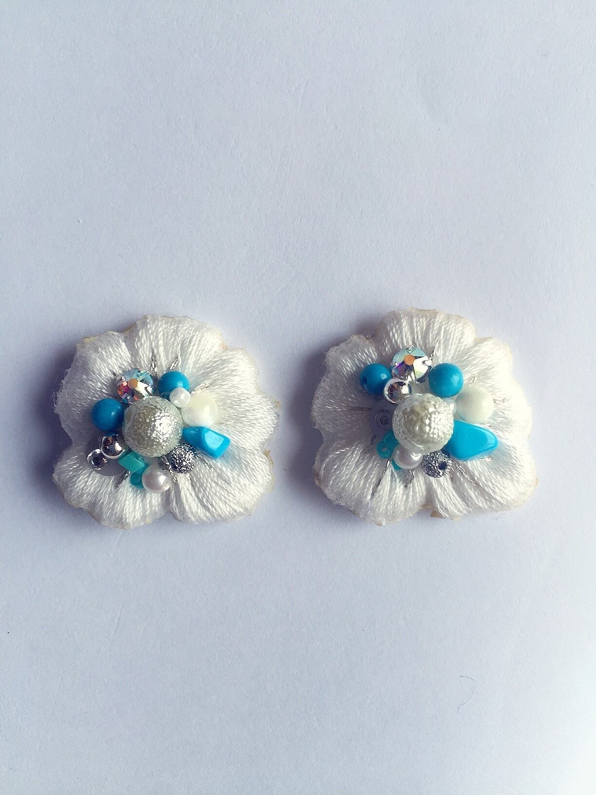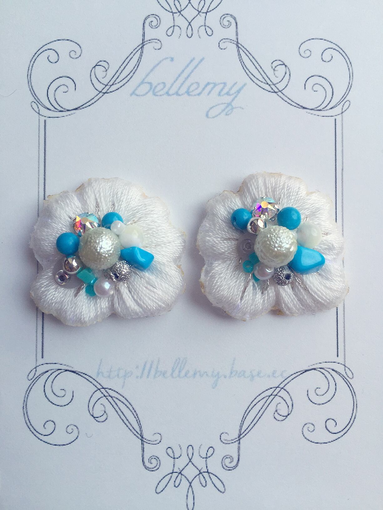 こちらのサンプル商品はシルバー糸で花芯を縫い付けておりますが、こちらは無くすことも可能です。