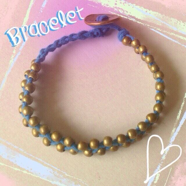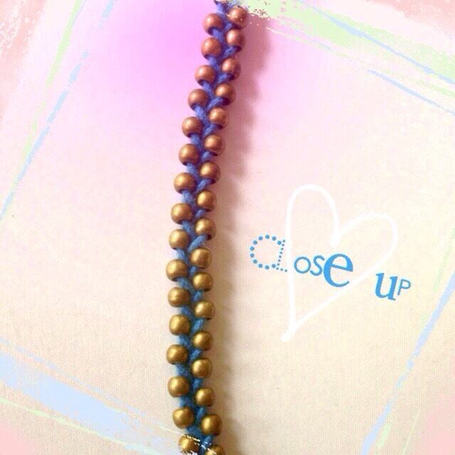 メタルビーズを編みこんだブレスレットです。