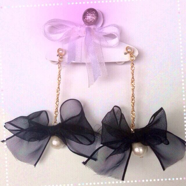 黒いリボンのピアスです。