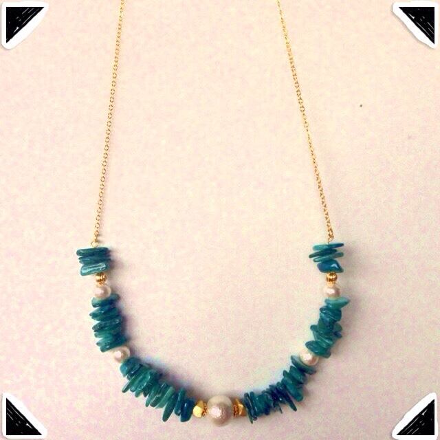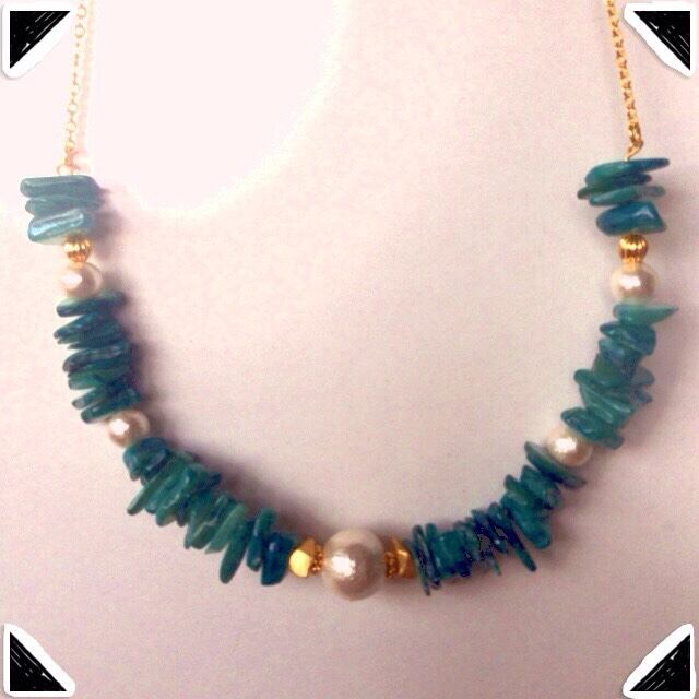 天然石 モスアゲートとパールとのネックレスになります。
