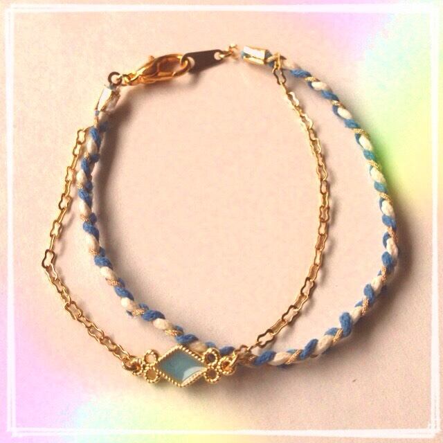 ブルーを基本にした、ミサンガとチャームの2連ブレスレット&アンクレットになります。